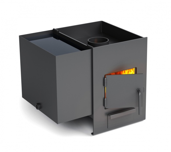 Двушечка» – печь-каменка со съемным боковым баком для горячей воды. Печь предназначена для парной объемом 6—12 м3, а также для отопления смежных помещений и нагрева воды в навесном баке (поставляется отдельно).